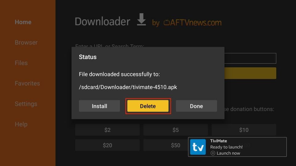 6. After installation, click Delete to remove the TiviMate APK from your device.